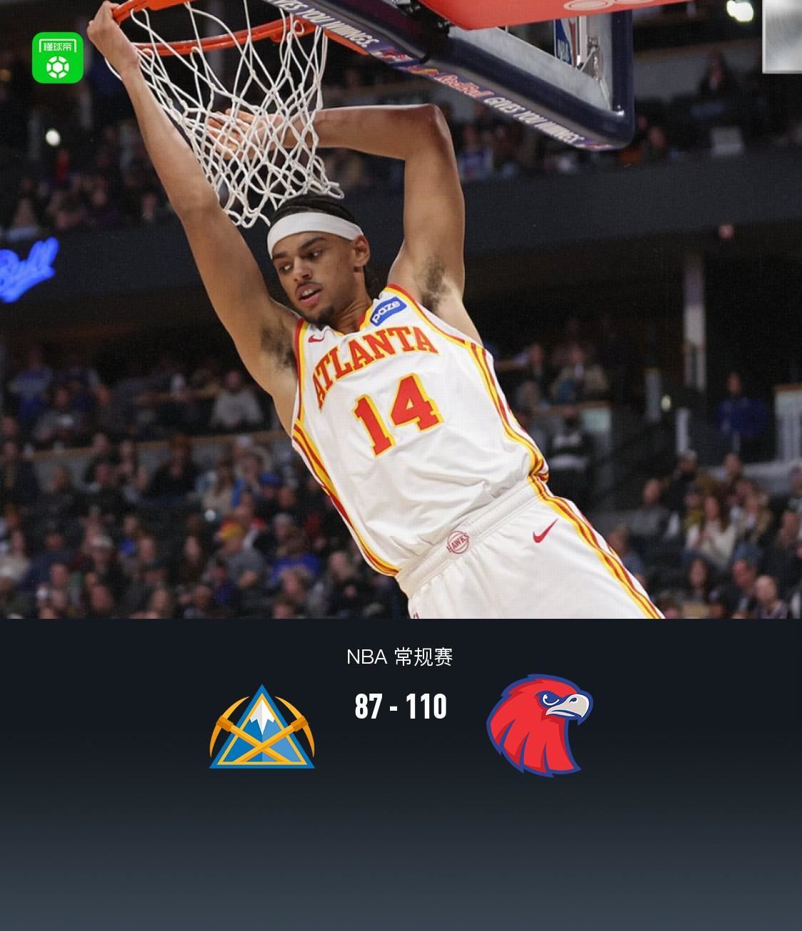 老鹰110-87大胜掘金,杰伦-约翰逊29+9+6